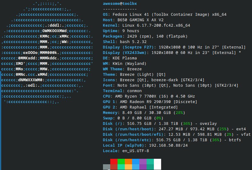 I've been using Linux since I was eight or so, and have used every major distribution (and some less common ones). My preference is for Fedora and the Red Hat ecosystem; I've recently gotten into atomicity as well. This webpage was written in GNU Nano in a Toolbox container on my Fedora Silverblue desktop!